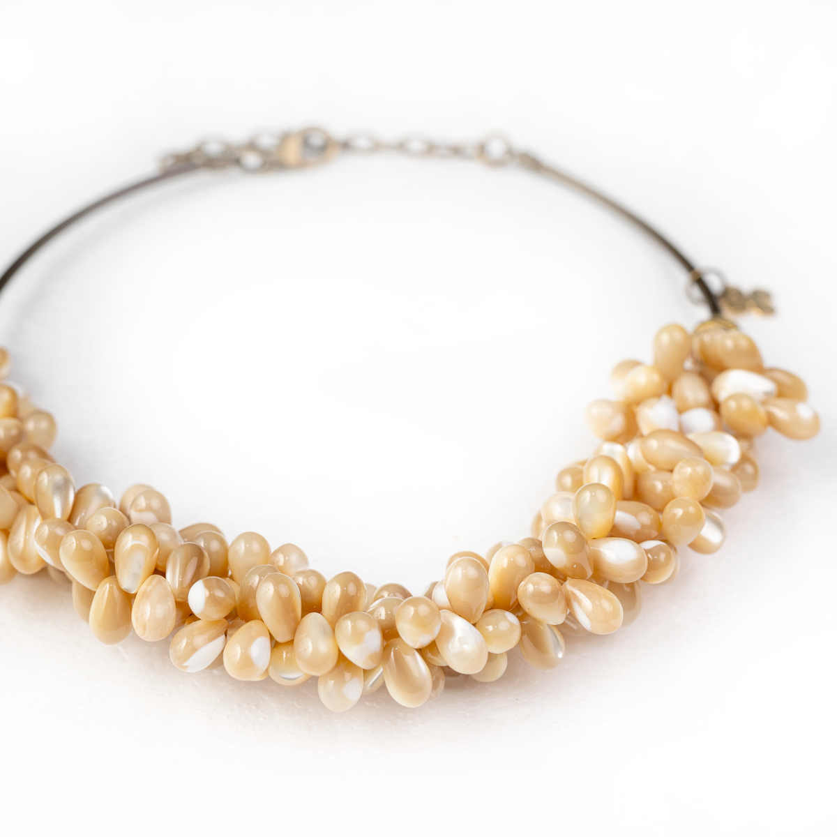 Singular nácar beige con el que hacemos un collar totalmente a mano. Nunca encontrarás dos iguales.