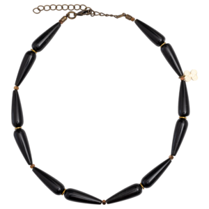 Elegante collar de ágatas negro sencillo donde es protagonista el material. Todos lo materiales son naturales y nunca hay dos piezas exactamente iguales.