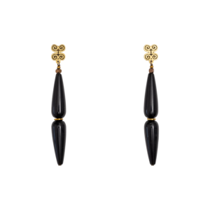 Bonitos pendientes de ágatas negros con forma de gota y engarce de bicono. Todos lo materiales son naturales y nunca hay dos piezas exactamente