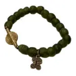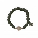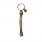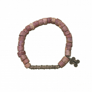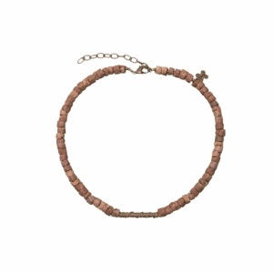 Piezas de bronce realizadas a la cera perdida una a una por manos artesanas combinadas con cuentas de bauxita también elaboradas de forma artesanal.
