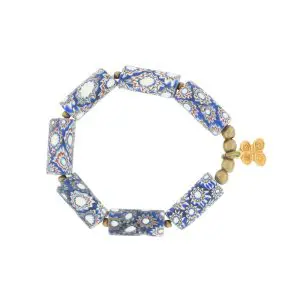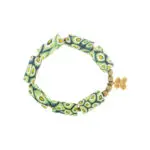 Pulsera hecha a mano en Tenerife (Islas Canarias) con favorecedores cilindros de cristal fundidos en crisoles de arena, elaborados y pintados individualmente por manos