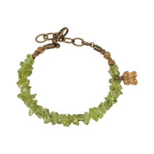 Espectacular doble pulsera de Olivina con sus características formas orgánicas y un precioso engarce.