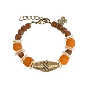 Preciosa pulsera de cristales hechos a mano en crisoles de arena, cuero nacional de primera calidad, conchas marinas y bronce hecho a mano a