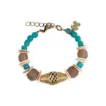 Pulsera hecha a mano en Tenerife (Islas Canarias) con varios bronces realizadas a la cera perdida uno a uno y cristales fundidos a mano