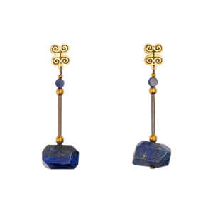 Llamativo collar con prismas de lapislázuli y bronces.