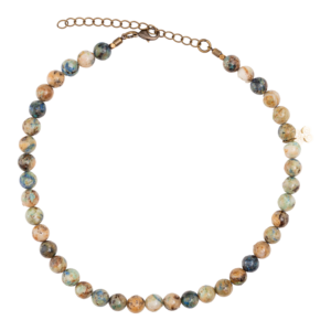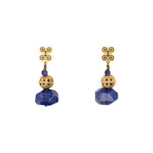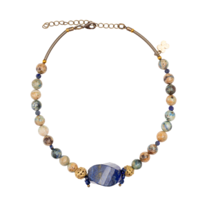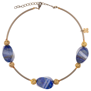 Llamativo collar con prismas de lapislázuli y bronces.