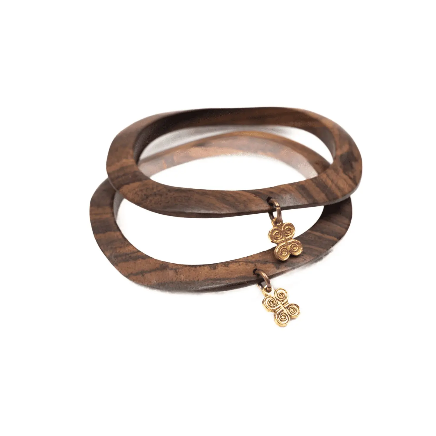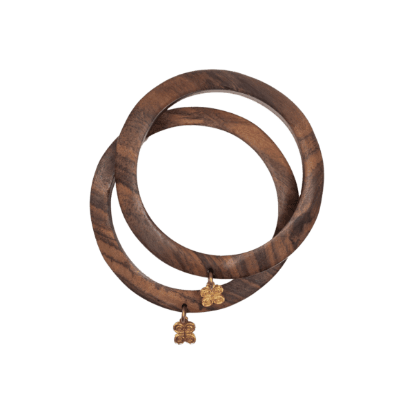 Preciosa doble pulsera de madera de acacia con formas orgánicas. Nunca encontrarás dos exactamente iguales.