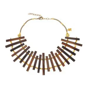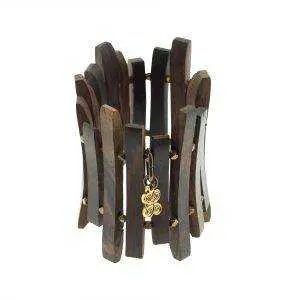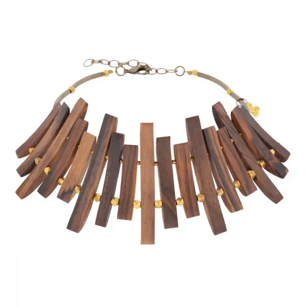 Colección realizada con estilizadas piezas de madera de acacia y bronces, totalmente a mano y hechas a la cera perdida.
