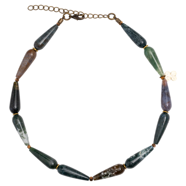 Elegante collar de ágatas jaspeadas sencillo donde es protagonista el material.