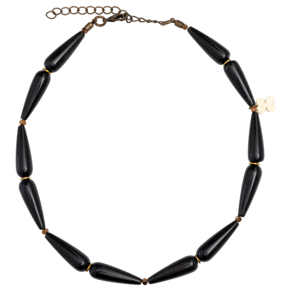 Elegante collar de ágatas negro sencillo donde es protagonista el material.