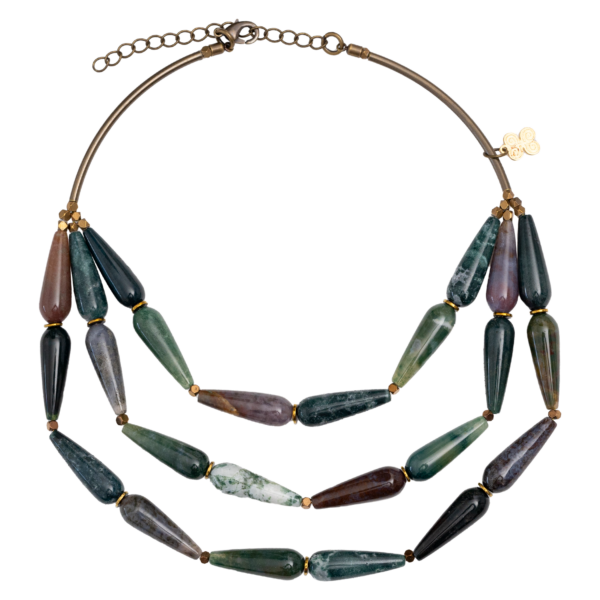 Precioso collar de ágatas jaspeada donde es protagonista el material.