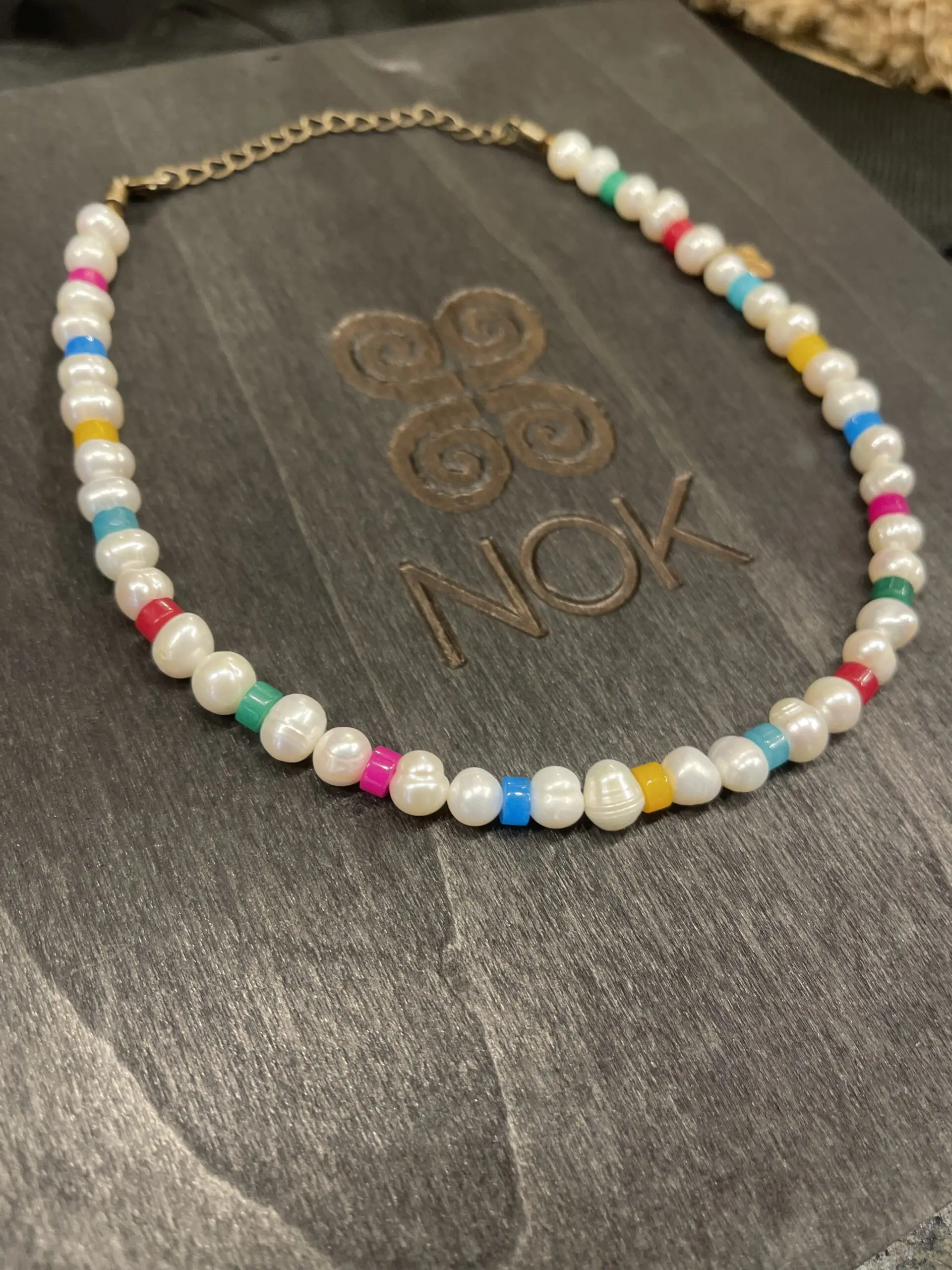 Precioso collar de perlas de río y Ágatas de colores.