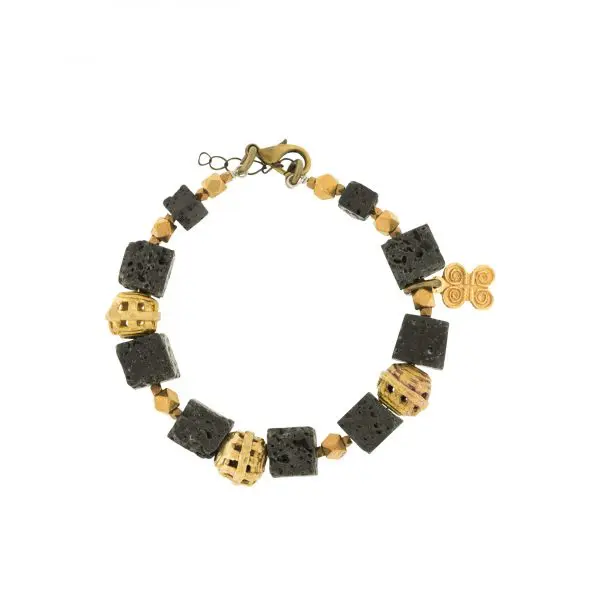 Pulsera de piezas de lava y bronce realizadas a la cera perdida, una a una.