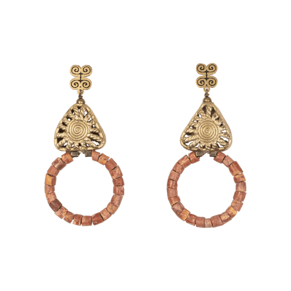 Pendientes muy especiales y singulares de Bauxita, material milenario de piedra caliza tallado artesanalmente cada cuenta y bronces hechos a mano a la cera perdida de uno en uno.