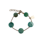 Pulsera hecha a mano en Tenerife (Islas Canarias) con varios bronces realizadas a la cera perdida uno a uno y cristales fundidos a mano